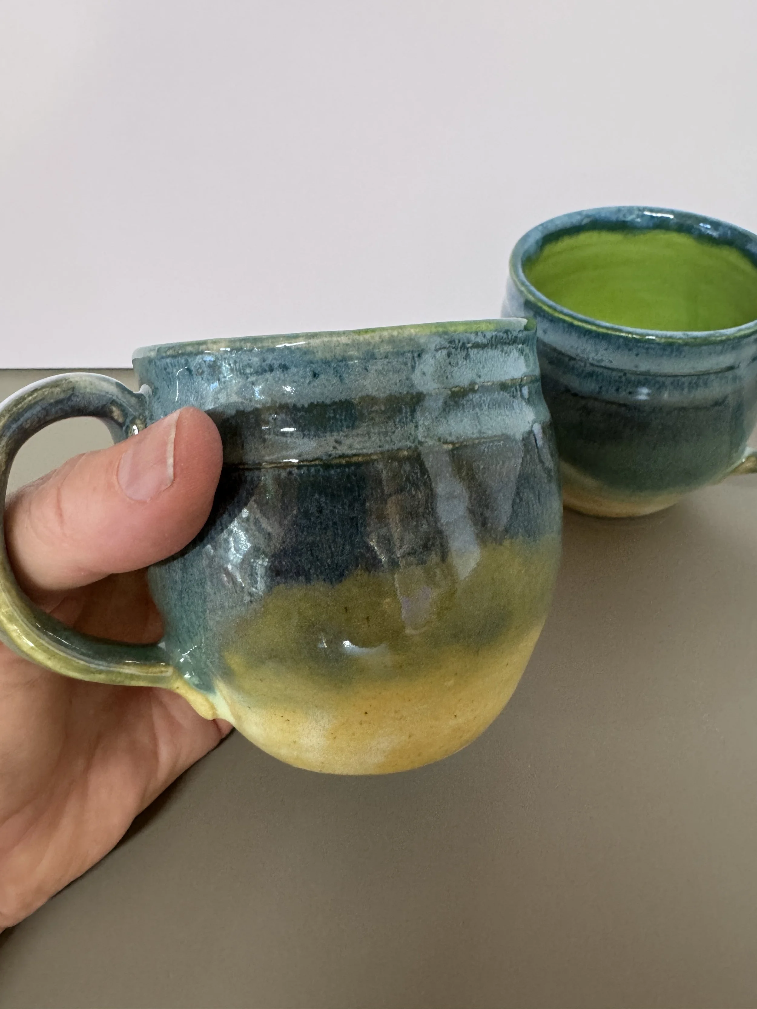 Start your morning with a sip of whimsy. These small mugs are glazed in a dreamy blue-to-purple ombre, evoking the soft, shifting colors of clouds at dusk. Each cup is wheel-thrown and slightly unique, with subtle variations in the gradient glaze that make every piece one-of-a-kind.